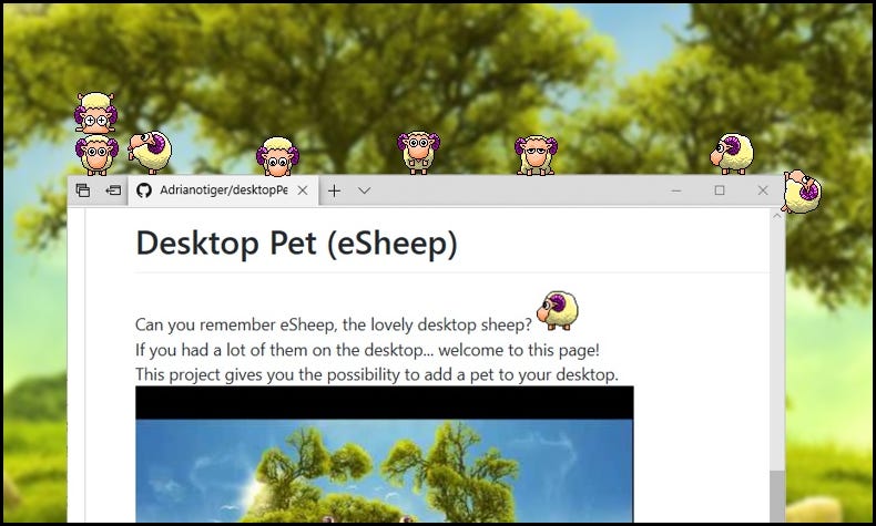 跟我差不多的人應該會知道這個 eSheep,我高中的時候的事情,還在電腦上跑過這隻羊,所以突然看到這個的時候覺得好懷念,現在有人復刻還開放原始碼了,但只能在 Windows 上面跑,有上架 Windows Store,可惜沒有 Mac 版本的。
